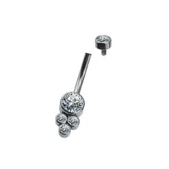 Piercing navel para ombligo. De titanio grado implante y con 5 zirconias cúbicas de color blanco. De nuestra marca de joyería corporal de titanio ZLP.