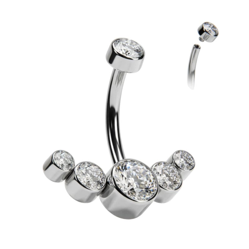 Piercing navel para ombligo. De titanio grado implante y con 6 zirconias cúbicas.